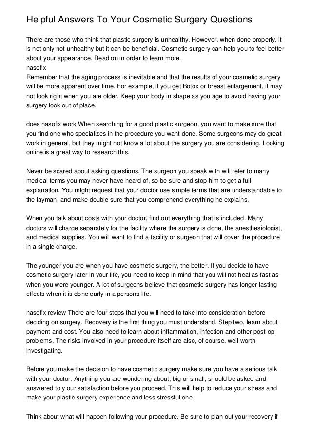 Pdf Helpful Answers To The Plastic Surgery Questions Hisaingenis Hisaingenis Academia Edu
