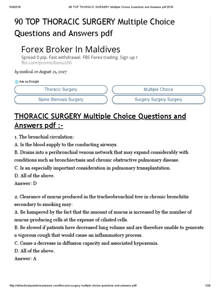 90 Top Thoracic Surgery Multiple Choice Questions And Answers Pdf 2018 Non Small Cell Lung Carcinoma Lung Cancer