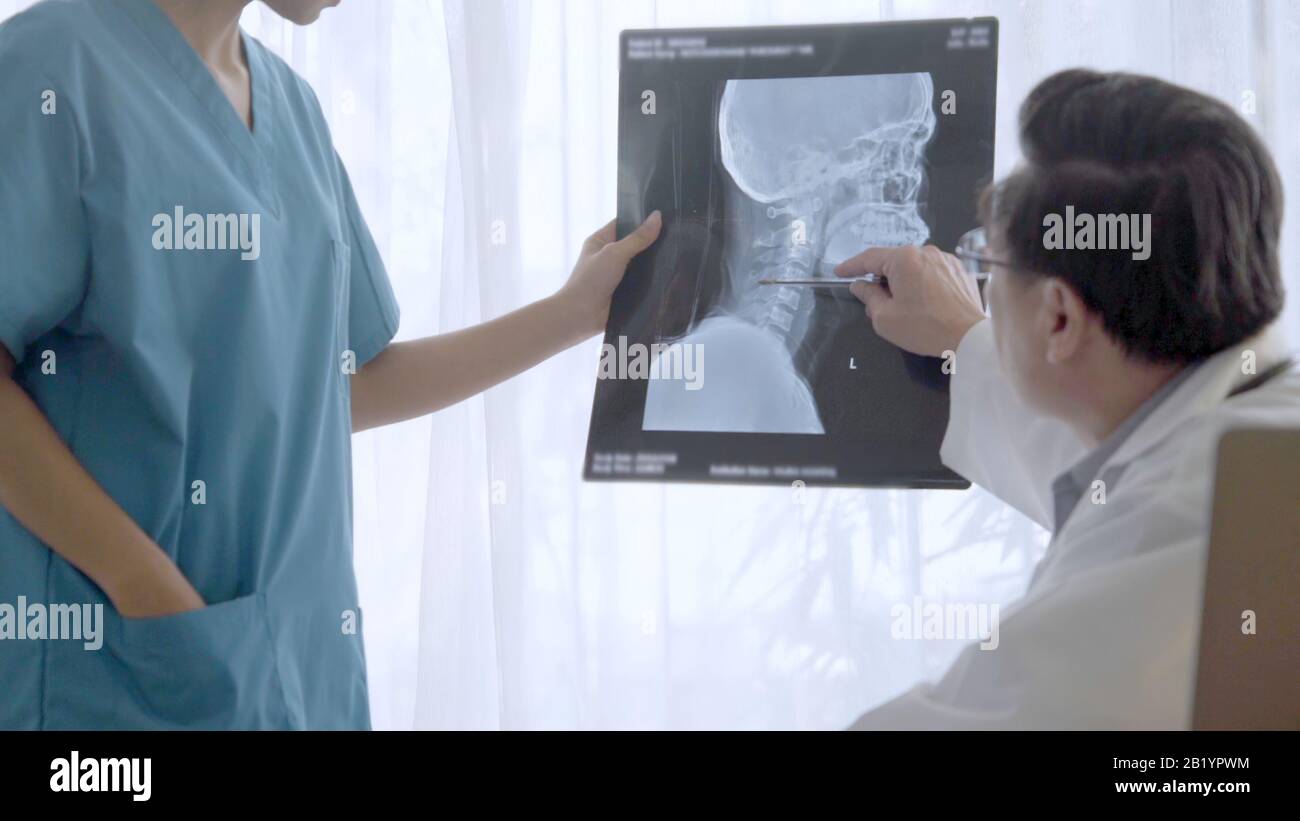Doctor And Nurse Discuss On Surgery Result Showing On X Ray Film Image Of Patient Head Concept Of Medical Healthcare And Specialist Doctor Staff Serv Stock Photo Alamy