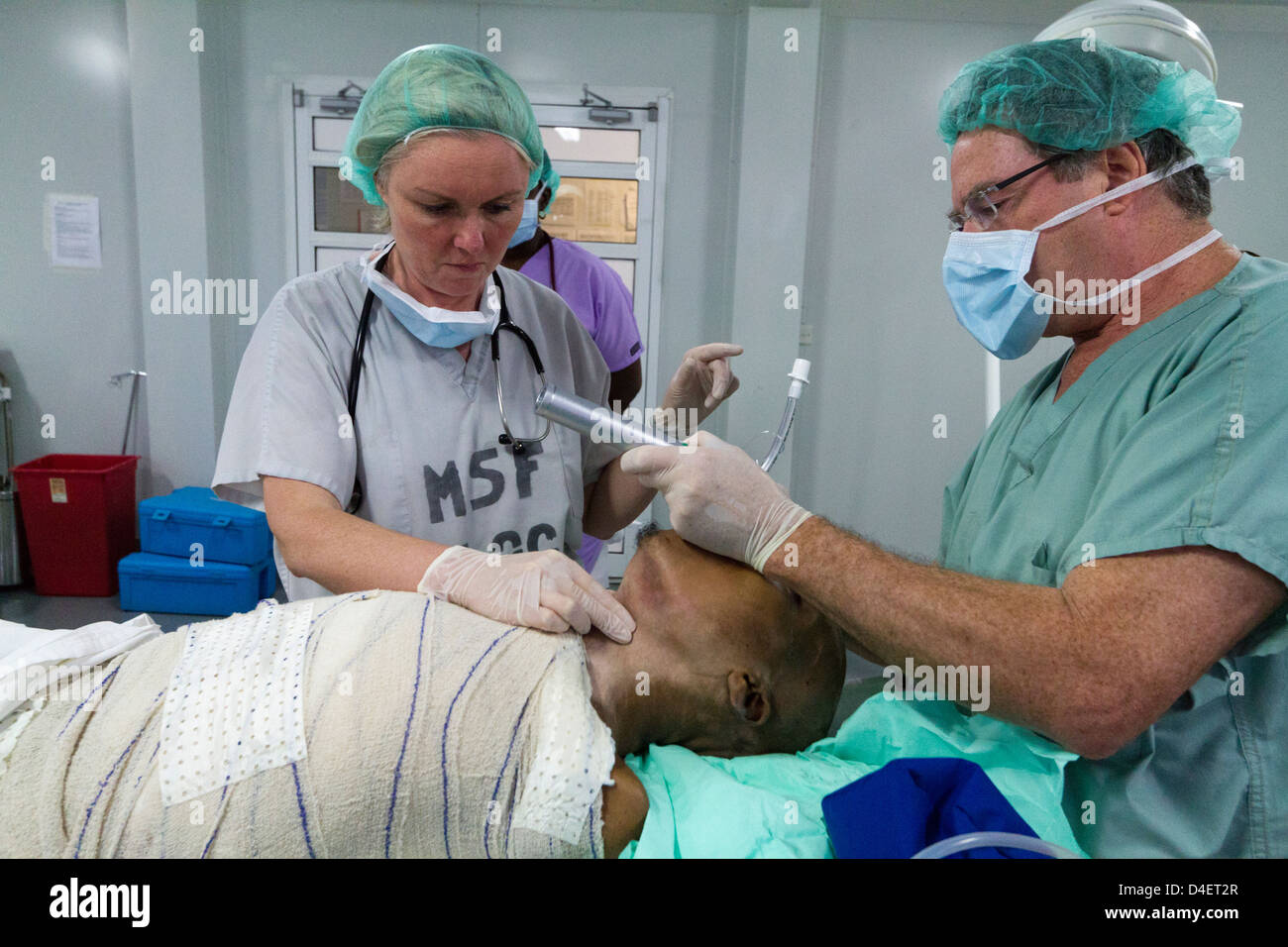 Anesthesia With Intubation For Surgery In Msf Hospital Port Au Prince Stock Photo Alamy