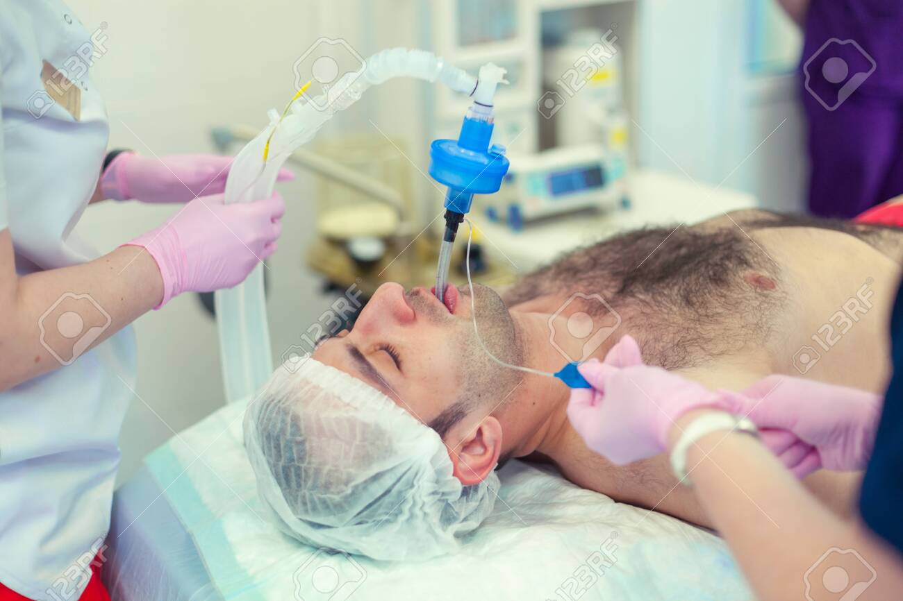 Anesthesiologist Performing Tracheal Intubation In Operation Room Preparation For Surgery Rhinoplasty Stock Photo Image Of Illness Male 156504410