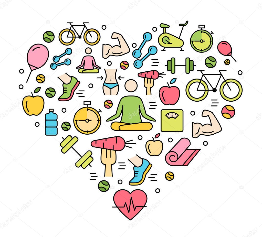 Vector Stock Exercise Healthy Diet And Cardiovascular Health Symbols Connected With Heart Beat Line Clipart Illustration Gg73904769 Gograph