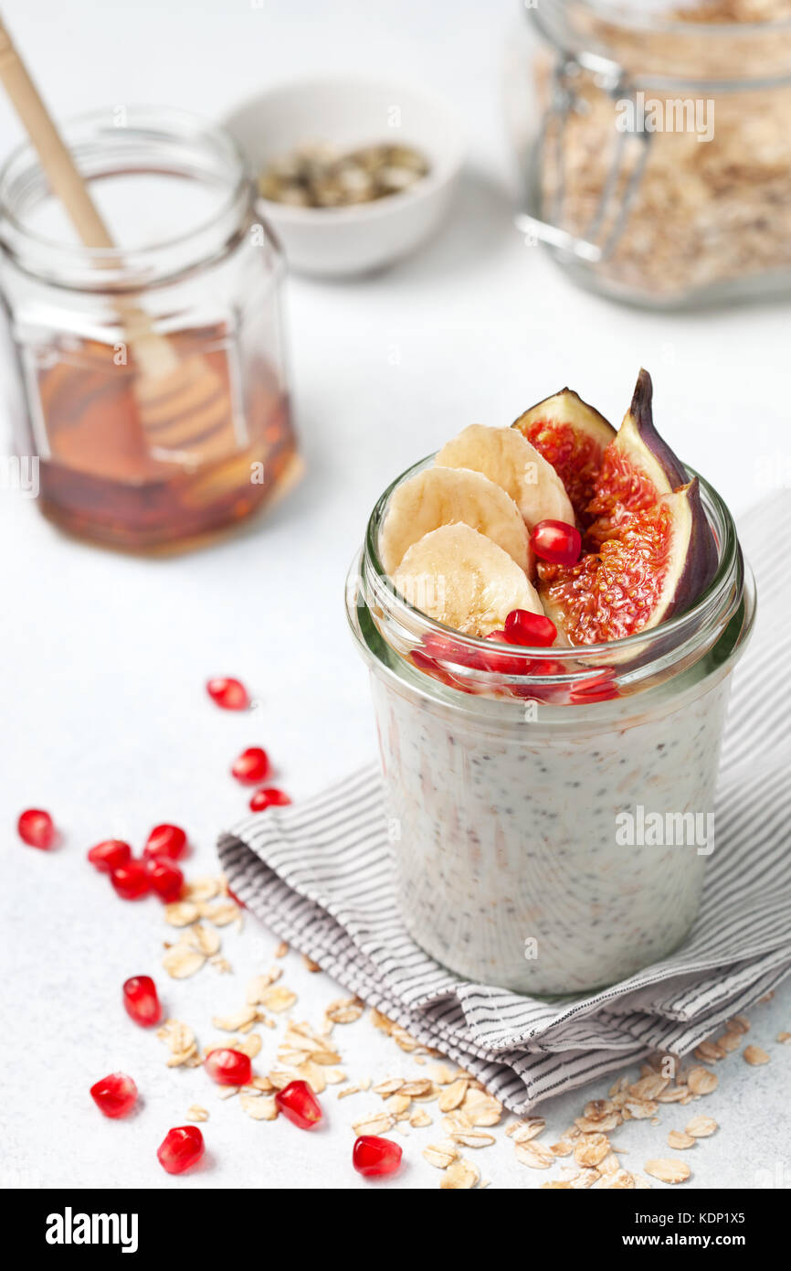 Healthy Diet Breakfast Overnight Oatmeal With Chia Seeds And Fruits Stock Photo Alamy