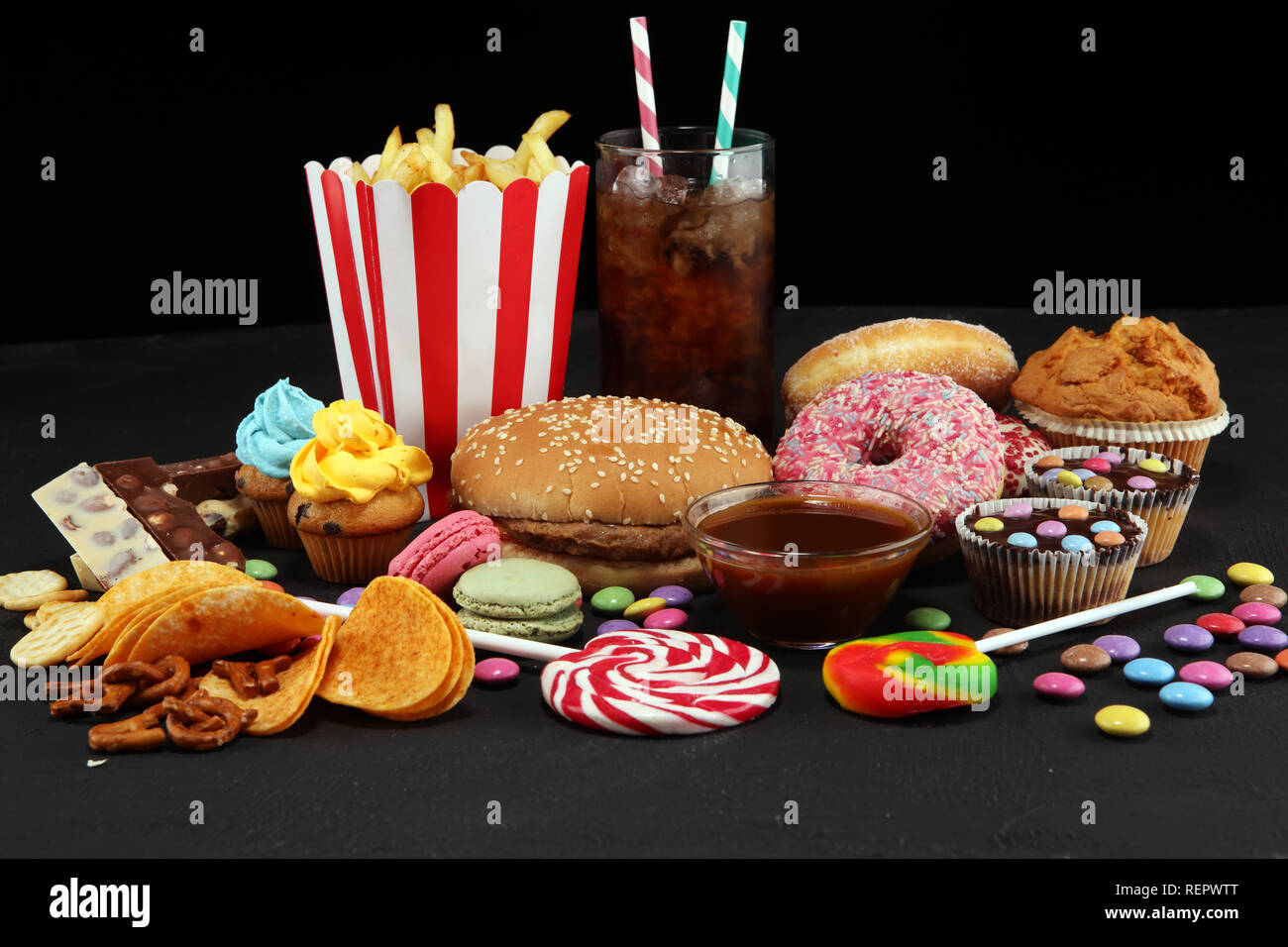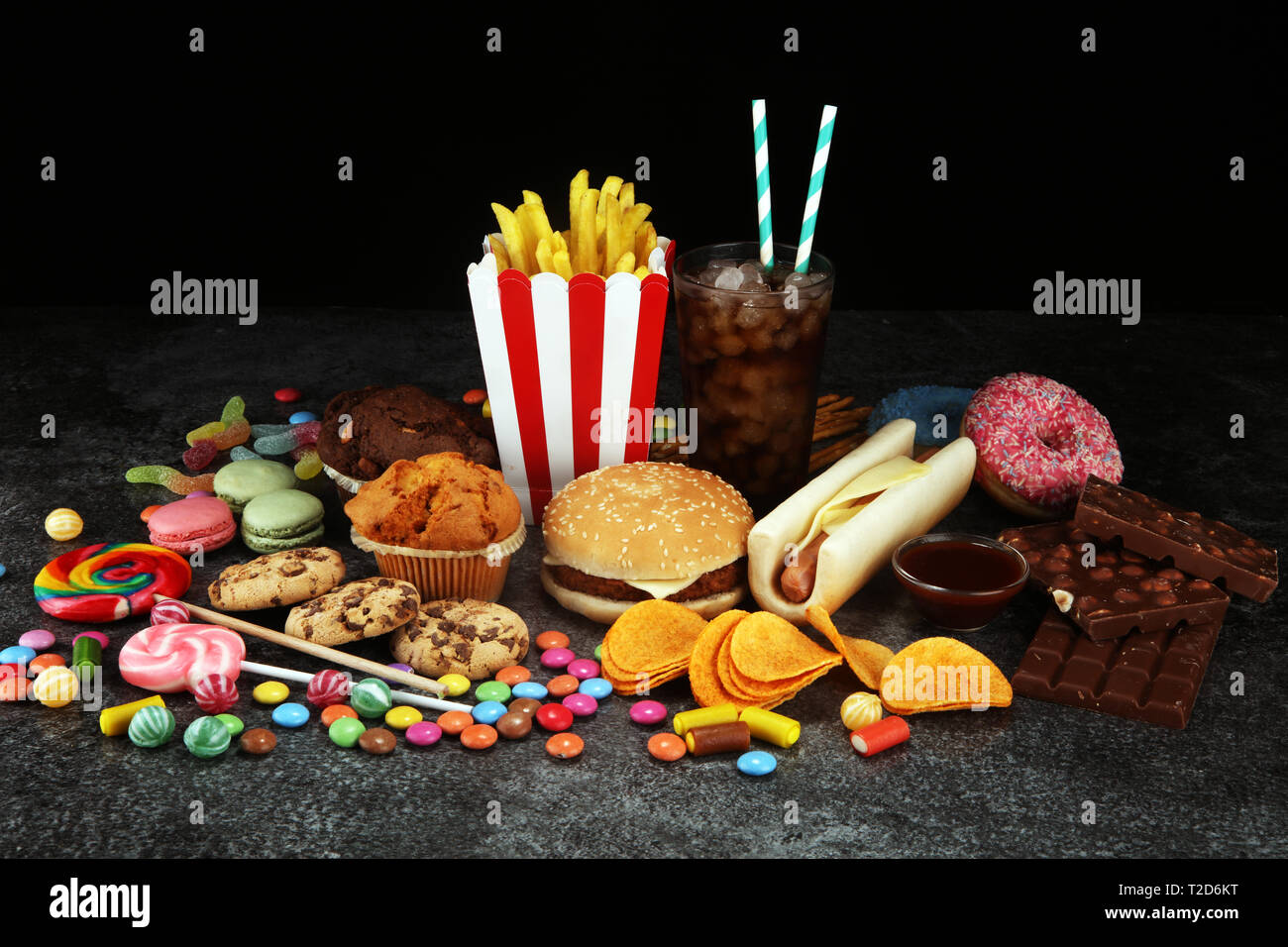 Unhealthy Products Food Bad For Figure Skin Heart And Teeth Assortment Of Fast Carbohydrates Food With Candy Stock Photo Alamy