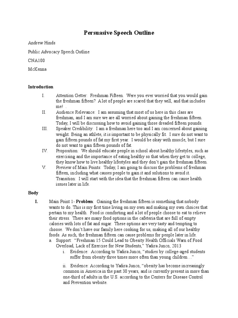 Eating Healthily With A Busy Lifestyle Informative Speech Outline