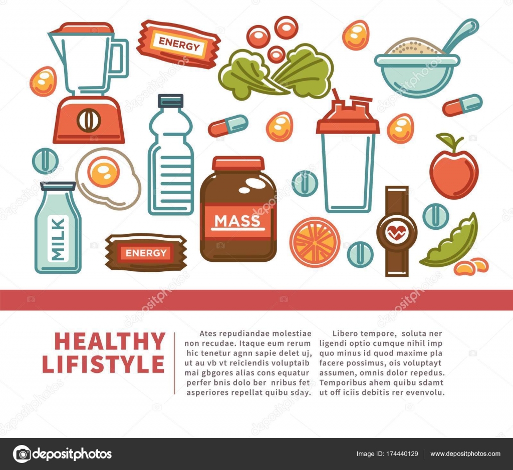 Fitness Food Poster Of Sports Healthy Diet Food Nutrition Icons Vector Flat Design Of Protein Drink Natural Vegetables Or Canstock