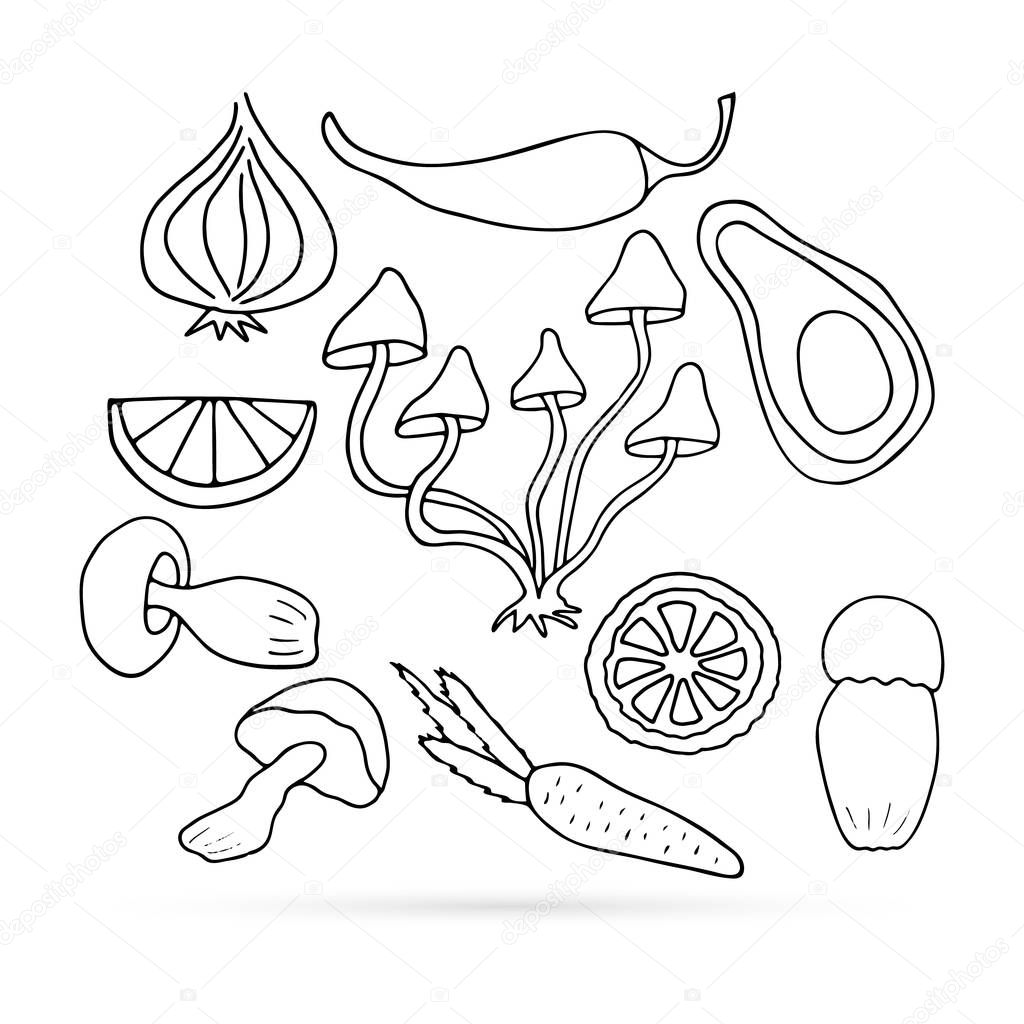 Doodle Food Set Mushroom Pepper Lemon Icon Vegetable Healthy Food Collection Kids Hand Drawing Art Line Sketch Vector Illustration Premium Vector In Adobe Illustrator Ai Ai Format Encapsulated Postscript