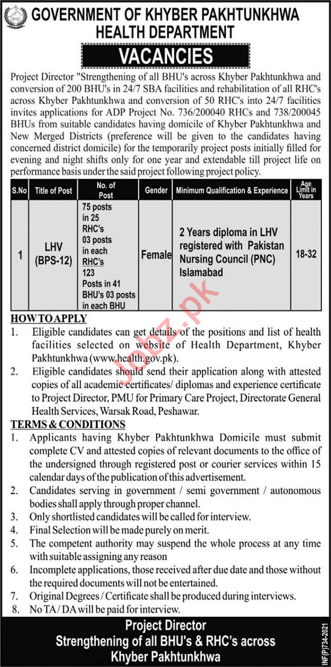 Health Department Kpk Jobs 2021 For Lhv 2021 Job Advertisement Pakistan