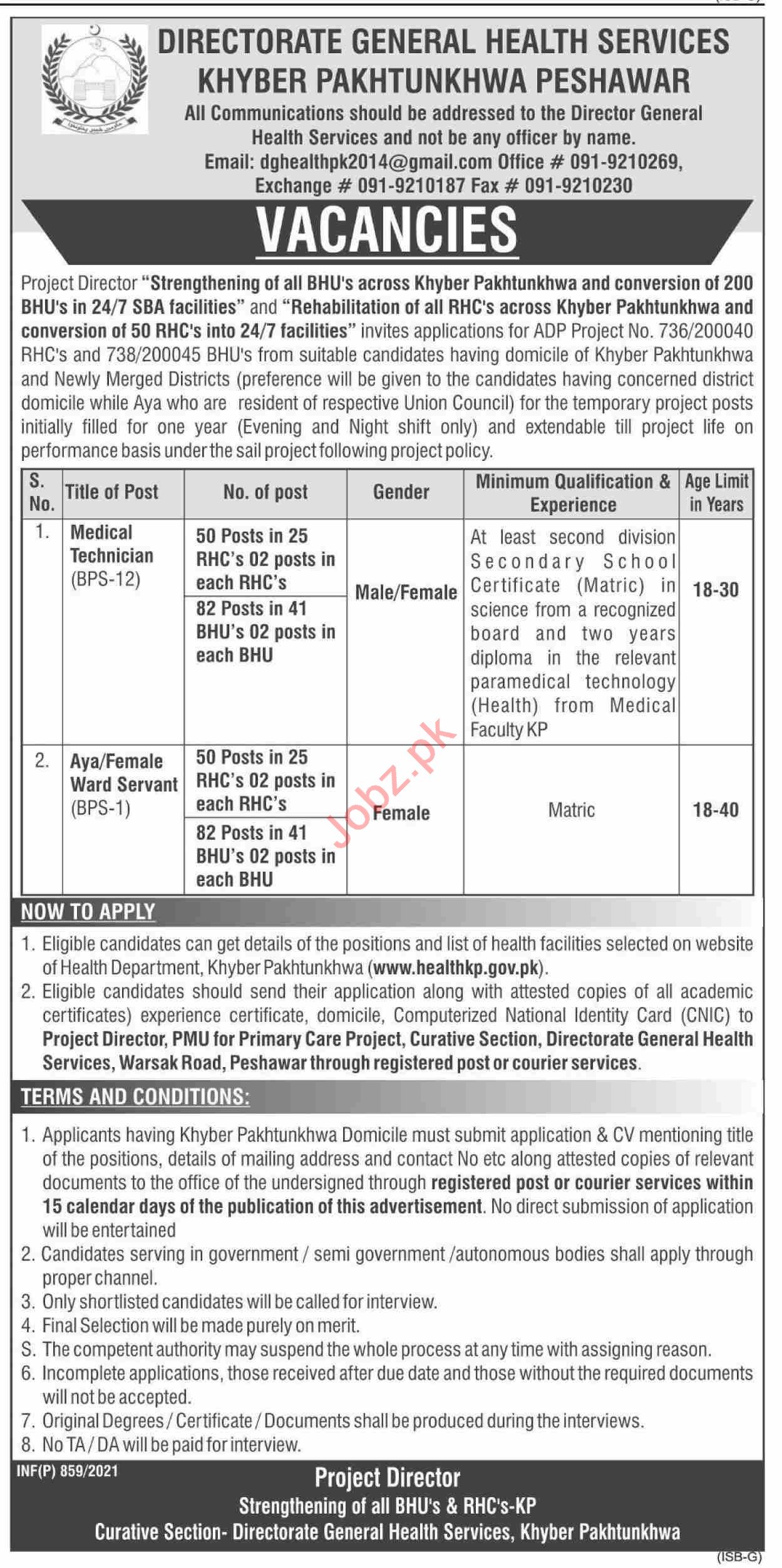 Directorate General Health Services Khyber Pakhtunkhwa Jobs 2021 Job Advertisement Pakistan