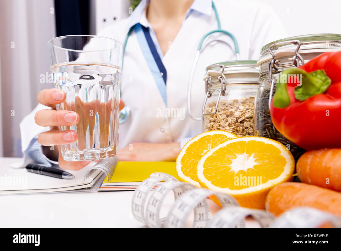 Vegetable Diet Nutrition And Medication Concept Nutritionist Offers Healthy Vegetables Diet And Drink Water Stock Photo Alamy