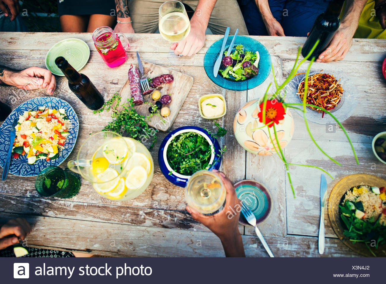 People Eat Healthy Meals At Served Table Dinner Party By Prostock Studio Friends Dinner Table Top View Healthy Recipes Party Food Easy Healthy People Eating