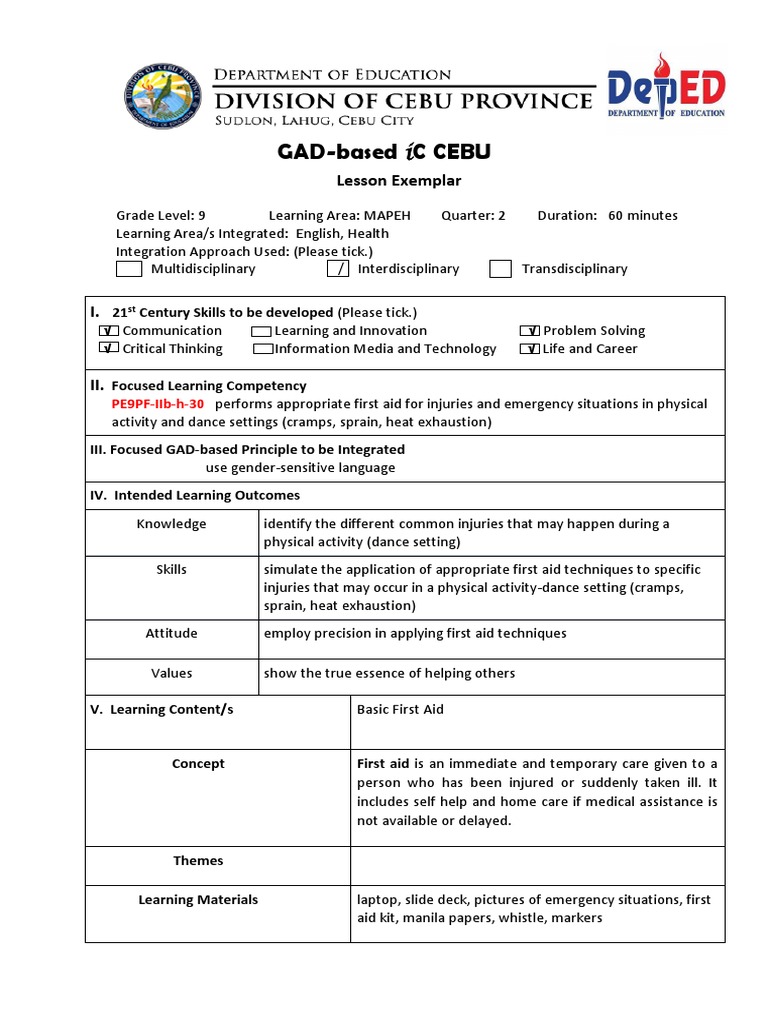 Strategies for how to help someone in crisis and non-crisis situations. Give himher electrolyte beverages to sip or make a salted drink. Lesson Plan in MAPEH Intended for Grade 9 Students I.